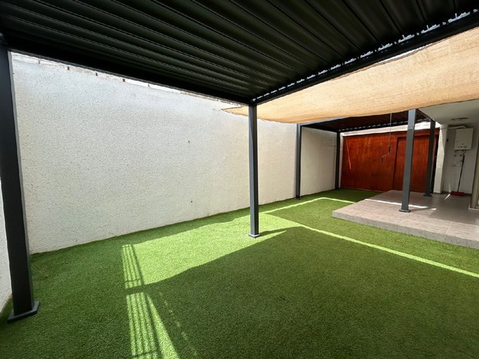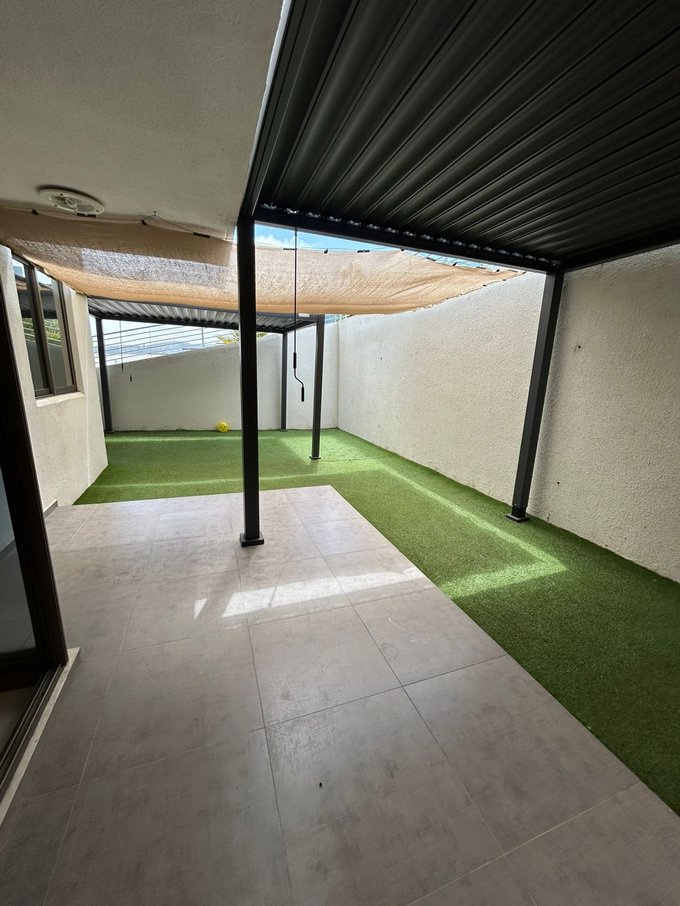 CARACTERÍSTICAS:- Living comedor amplio, con piso de cerámico y salida directa al patio- Cocina americana amoblada y equipada- Tres dormitorios amplios, todos alfombrados y con closet - Dos baños completos uno de ellos en suite- Patio con pasto sintético, equipado con dos pérgolas italianas con sistema de persianas a manivela- Vidrios empavonados (dormitorios y living) que aportan privacidad y luminosidad- 1 Bodega amplia- Estacionamiento para un vehículo