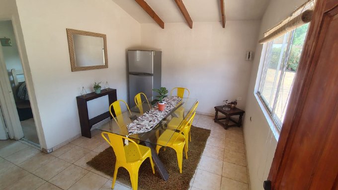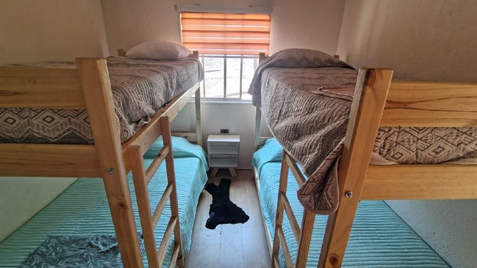 Cabaña 1: 2 dormitorios simples, Living – comedor, Cocina americana, 1 baño. Superficie construida: 35,5 m2 aproximados.