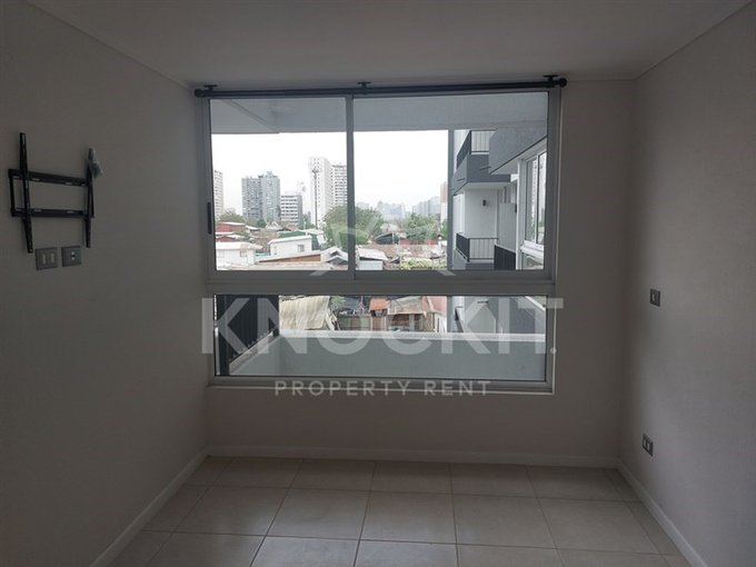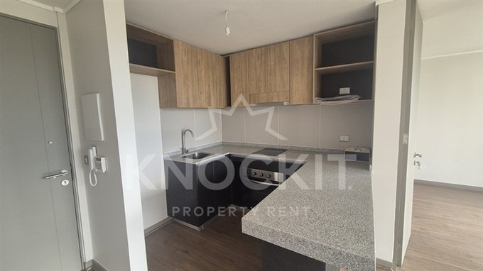 Se arrienda departamento 1D1B, Cuenta con Cocina Americana equipada con Horno, Encimera y Campana; Baño con Ducha y Tina; Living Comedor con acceso a Balcón y Espacio para Lavadora.