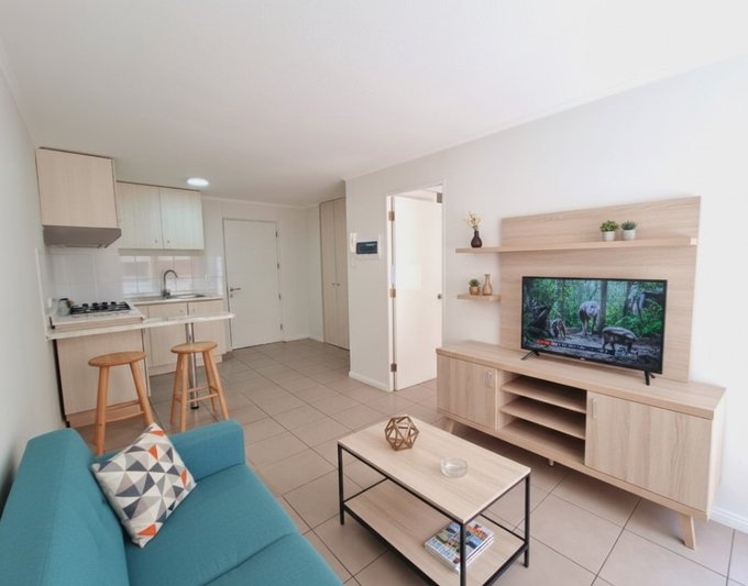 Se arrienda departamento de 1 dormitorio 1 baño en tranquilo sector de Quinta Normal, cocina amoblada y equipada con encimera a gas, horno y campana eléctrica, dispone de conexión a lavadora. Destaca su amplia terraza.