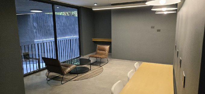 El edificio cuenta con sólo 7 pisos. Áreas verdes y una terraza en la azotea (piso 7) con jardines, quincho, spa para mascotas. Sala cowork, sala multiuso, sala gourmet y bicicleteros. Estacionamientos de visita. Conserjería y acceso controlado 24/7.