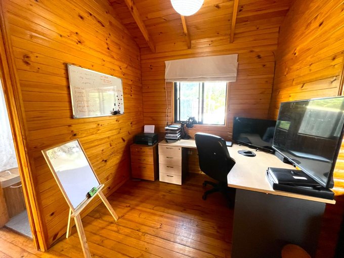 Desde la terraza se accede a un amplio patio posterior, perfecto para disfrutar al aire libre. El terreno incluye juegos infantiles de madera, ideal para familias, y cuenta además con espacio destinado a escritorio o home office.