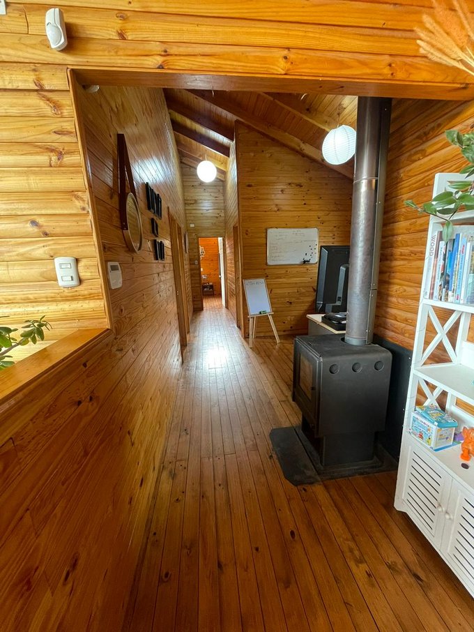 Para mayor confort, la casa dispone de bosca a leña, entregando una calefacción eficiente y un ambiente cálido en invierno. La propiedad incluye pozo propio, pequeña bodega y estacionamiento amplio.