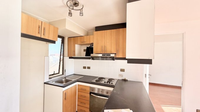 El departamento cuenta con 1 baño y 1 espacio privado, ideal para solteros o parejas que desean un hogar práctico y bien ubicado. Su orientación sur-poniente garantiza luminosidad durante el día. Los gastos comunes son aproximadamente $130,000 pesos.