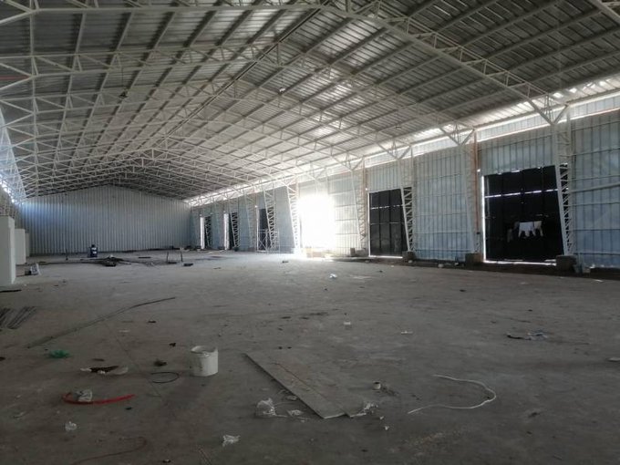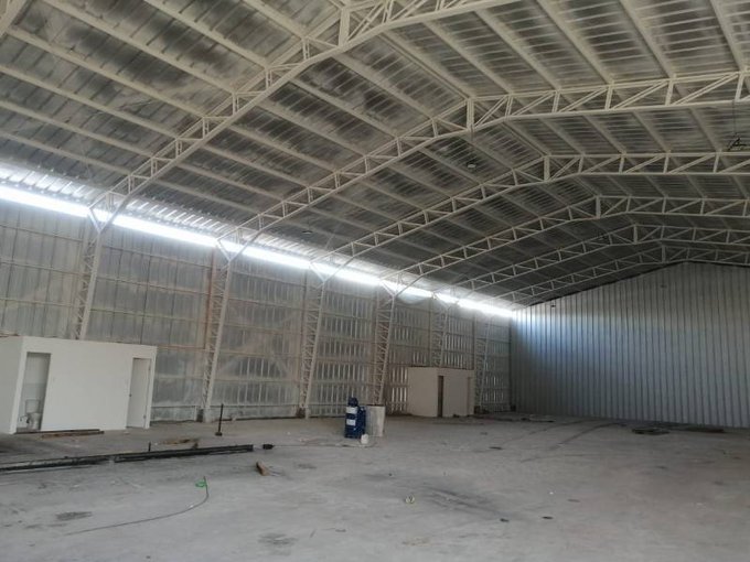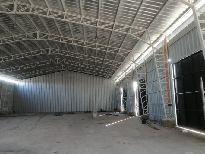 Ancho 21 mts Largo 120 mts Altura 7 al hombro 8 altura total Entrada acceso 8 mts Luz Trifasica