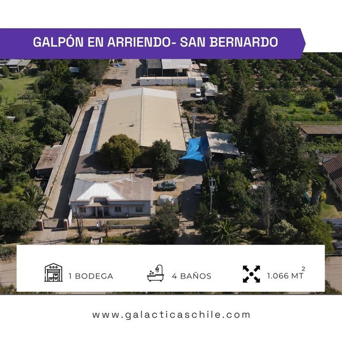 Se arrienda amplio galpón industrial en Calle Luberna, San Bernardo, a pasos de Ruta 5 Sur, con muy buena accesibilidad para transporte y logística.