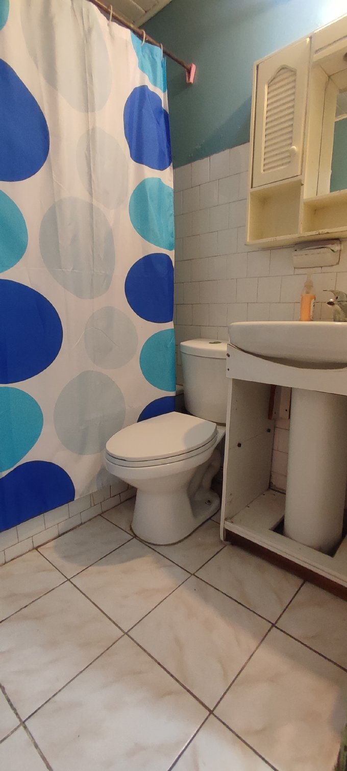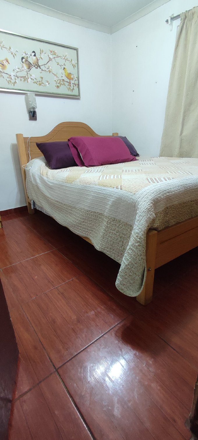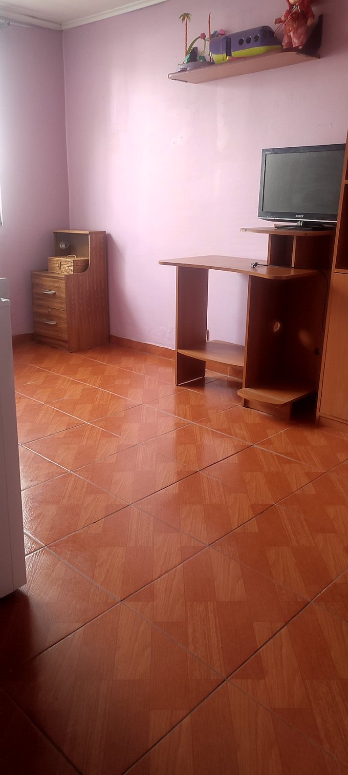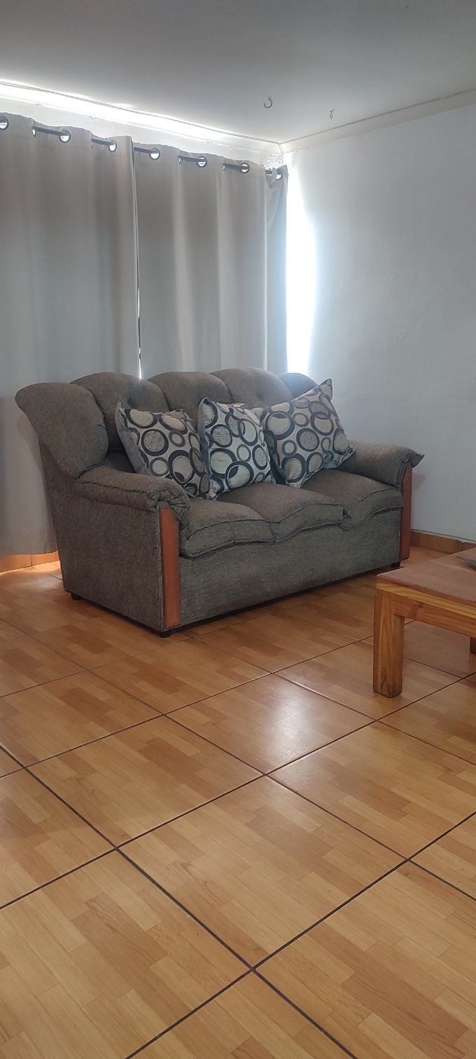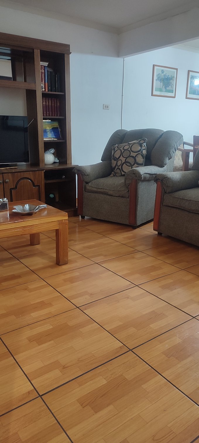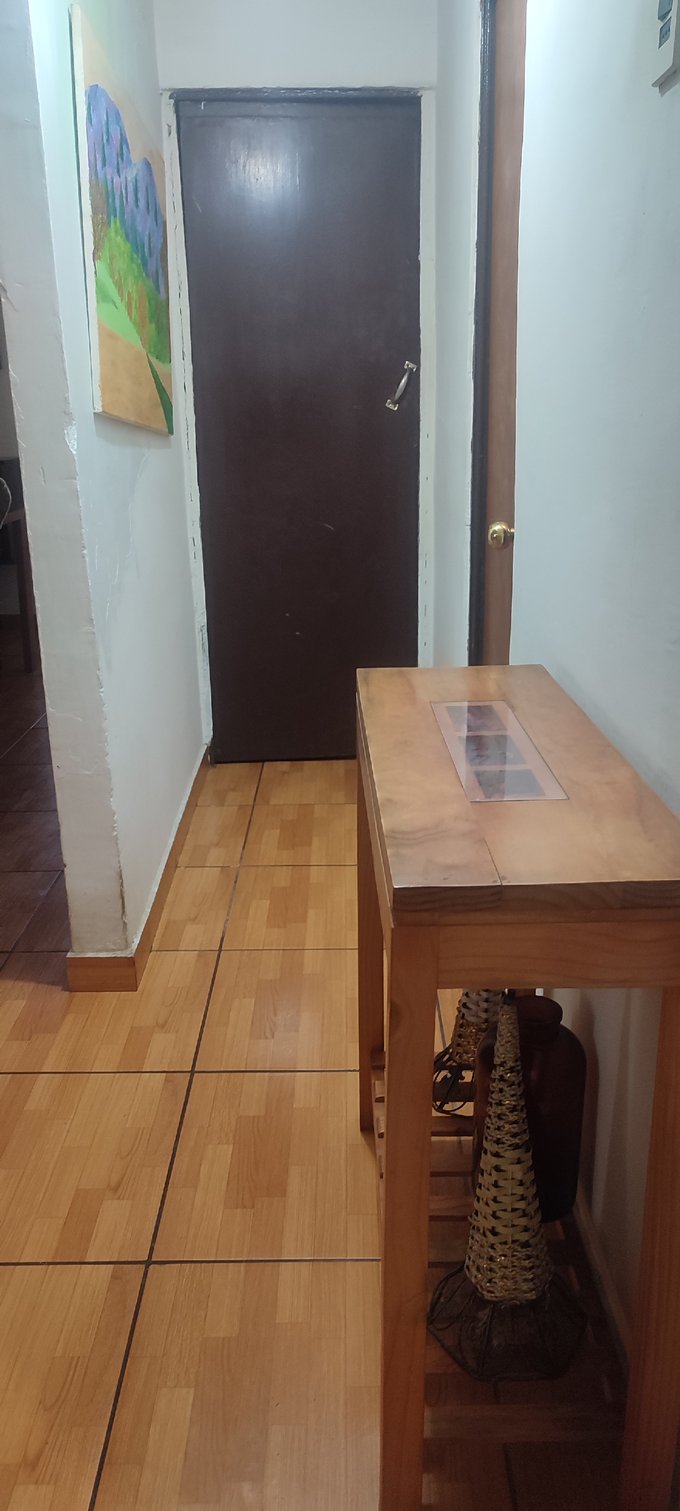 El interior cuenta con un living-comedor conectado, pisos cerámicos y ventanales al exterior que facilitan la iluminación natural del espacio principal. La casa cuenta con tres dormitorios, un baño completo y una cocina independiente equipada con muebles a medida y cubierta de fácil mantenimiento. Además, incluye una bodega que brinda espacio adicional para almacenamiento.