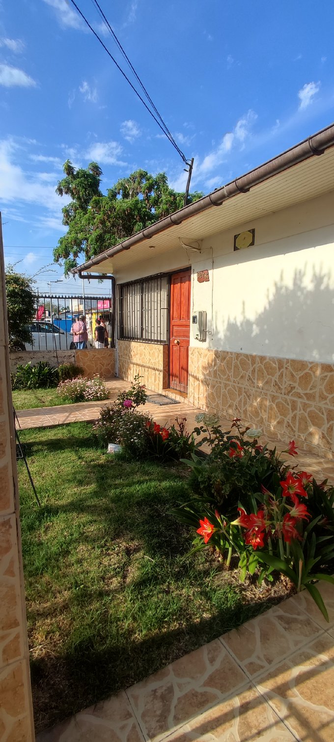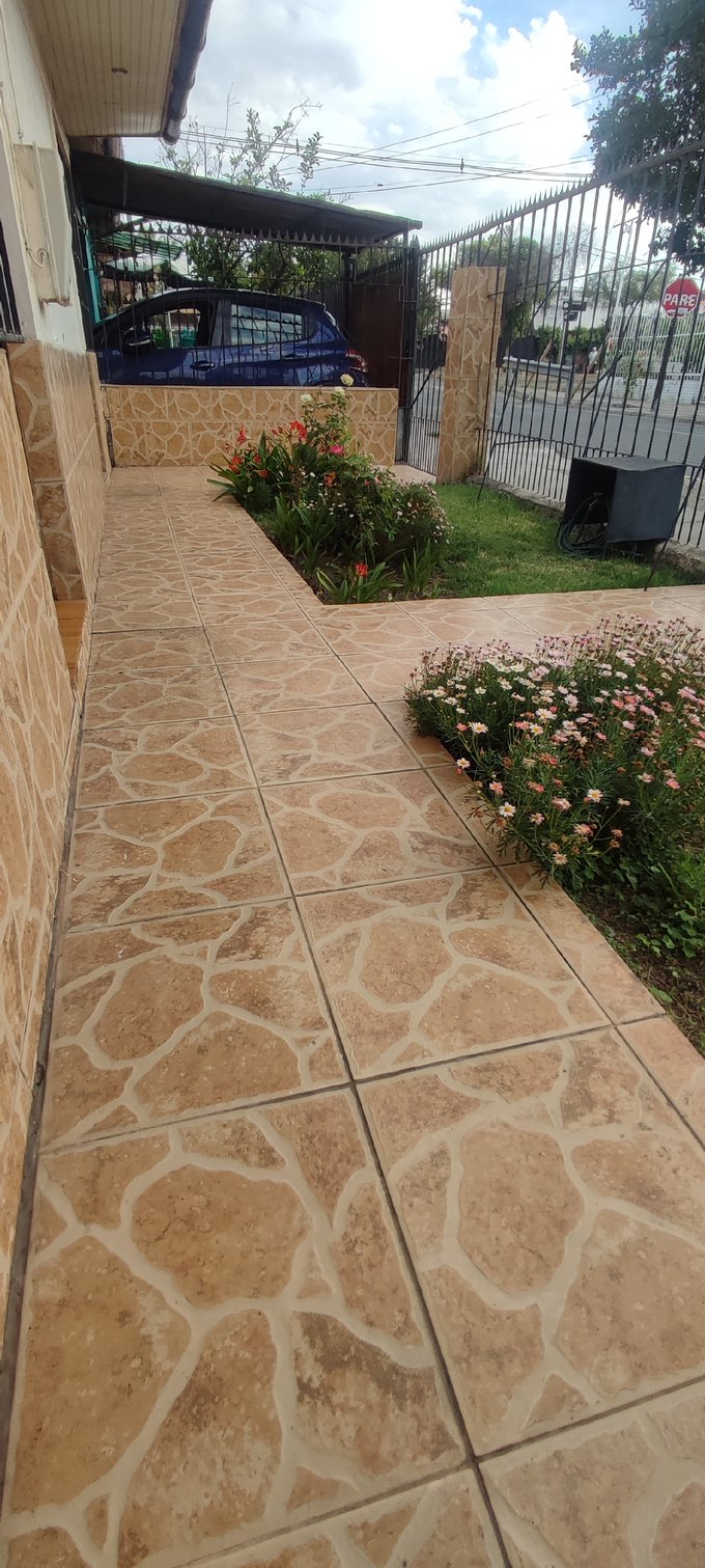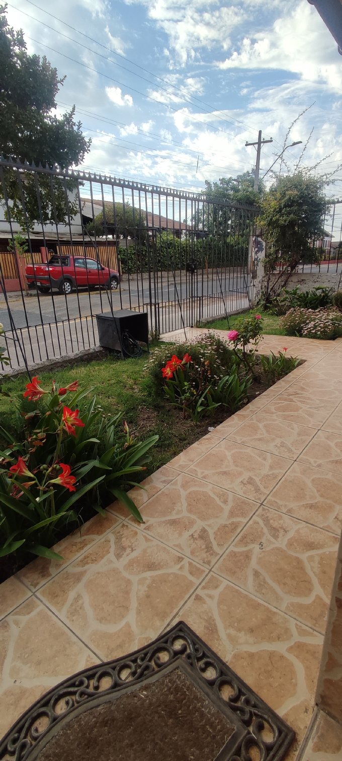 Casa con una superficie total de 150 m² y 112 m² útiles, ofrece un entorno funcional distribuido en un solo nivel. Presenta acceso desde el exterior mediante sendero pavimentado y áreas de jardín frontal con presencia de jardineras y césped, brindando un ingreso definido hacia la vivienda.