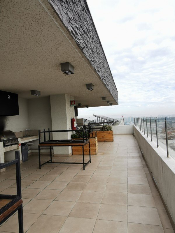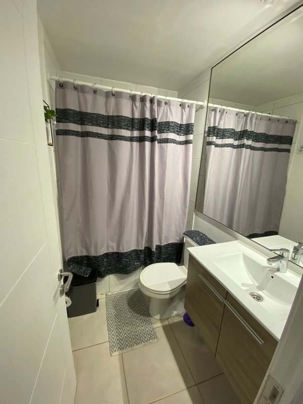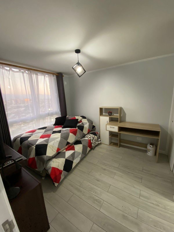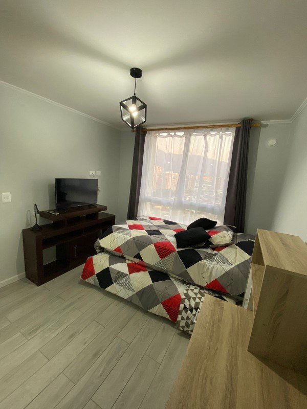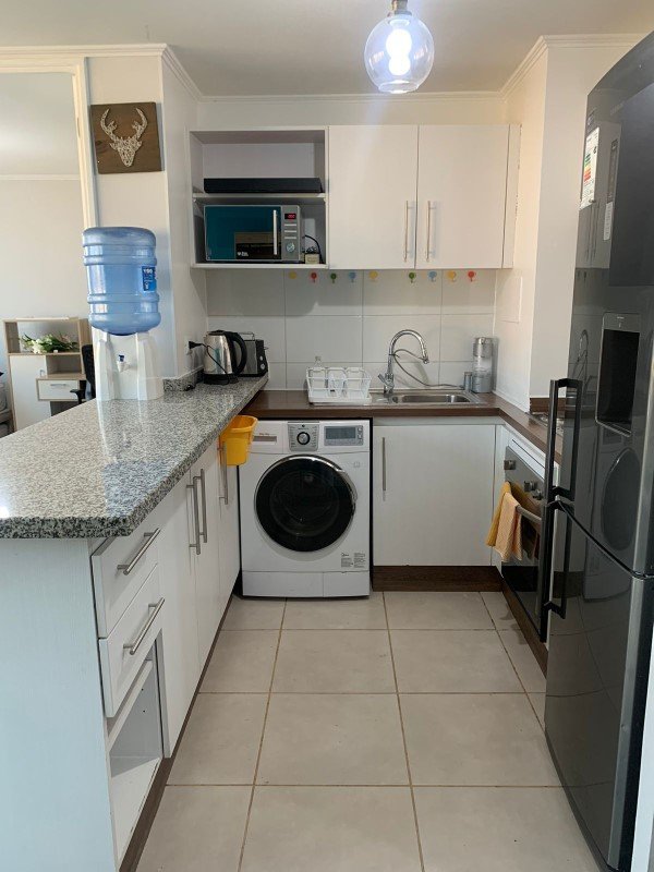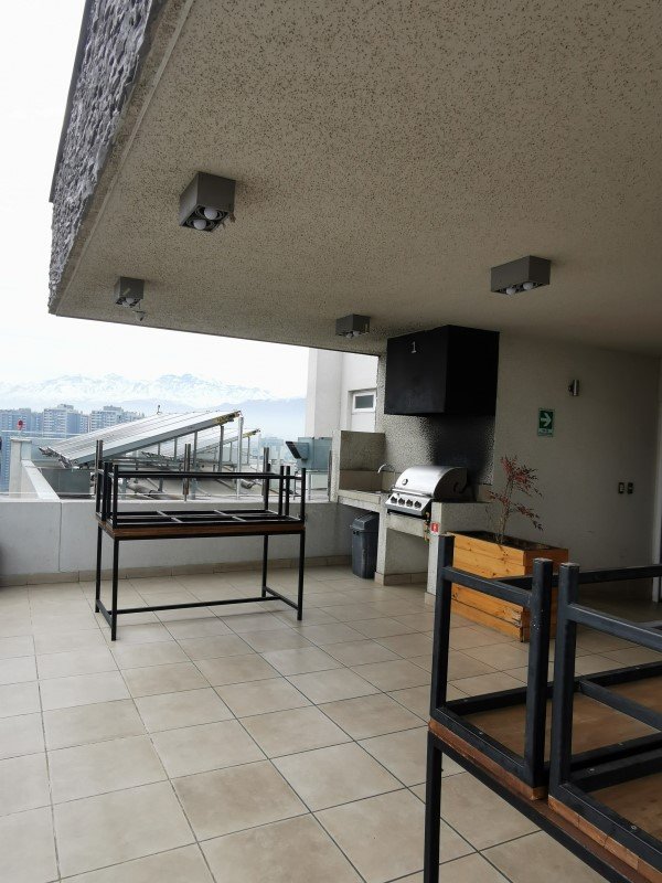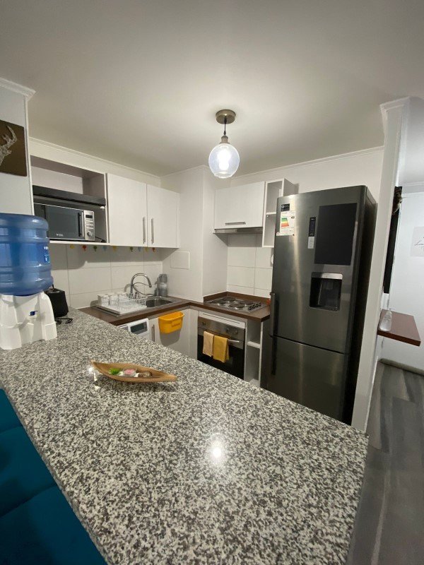 Cocina equipada con horno, campana y encimera, Piso porcelanato, mesón y cubierta de granito. Conexión lavadora. Living con acceso a terraza, calefacción eléctrica.
