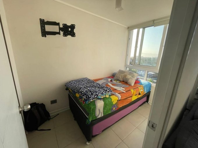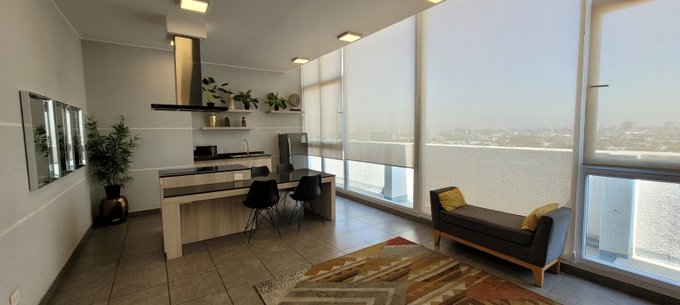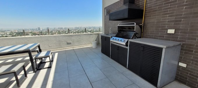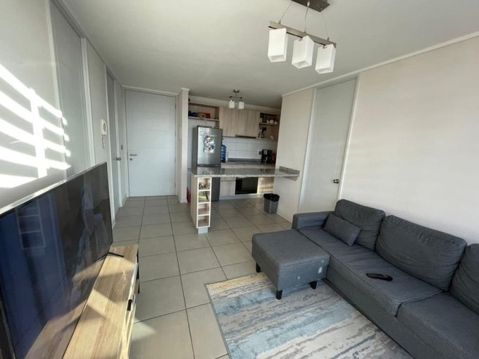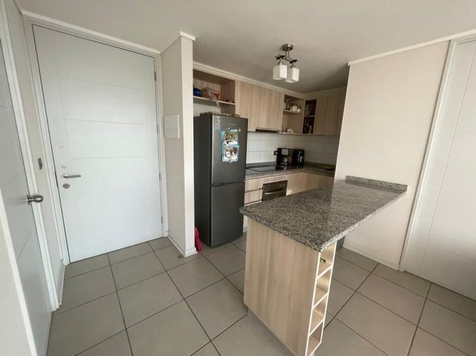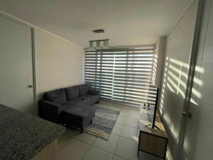 Elementos: Ventanas termopanel, Piso cerámico en todo el departamento, cubierta de piedra y cocina vitrocerámica, Luminaria, Cortinas rollers y soportes para TV