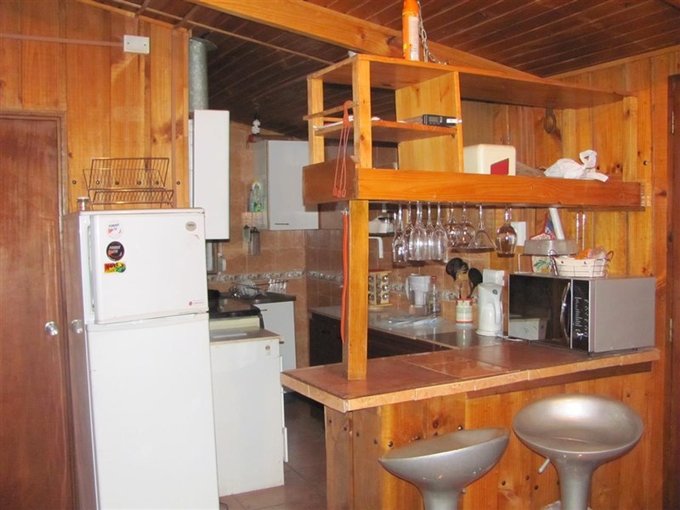 Cocina americana integrada a living-comedor, equipada.
