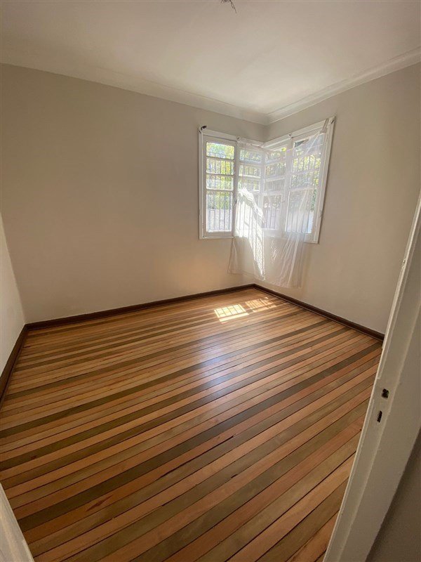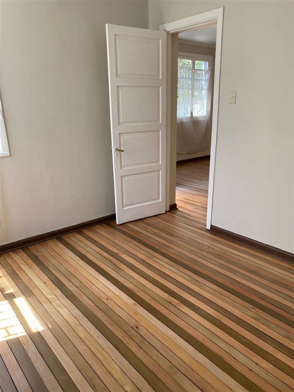El piso es de madera, ventanas con marcos de madera.