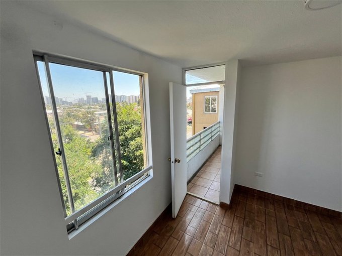 Se arrienda departamento 52 mt2,estacionamiento, 2 dormitorios, 1 baño, con terraza, logia y cocina amoblada. Se entrega pintando y con aseo. Quinto piso, escaleras. Piscina y areas verdes. Metro ciudad del niño. Gran cantidad de comercio, salud y supermercado cerca.