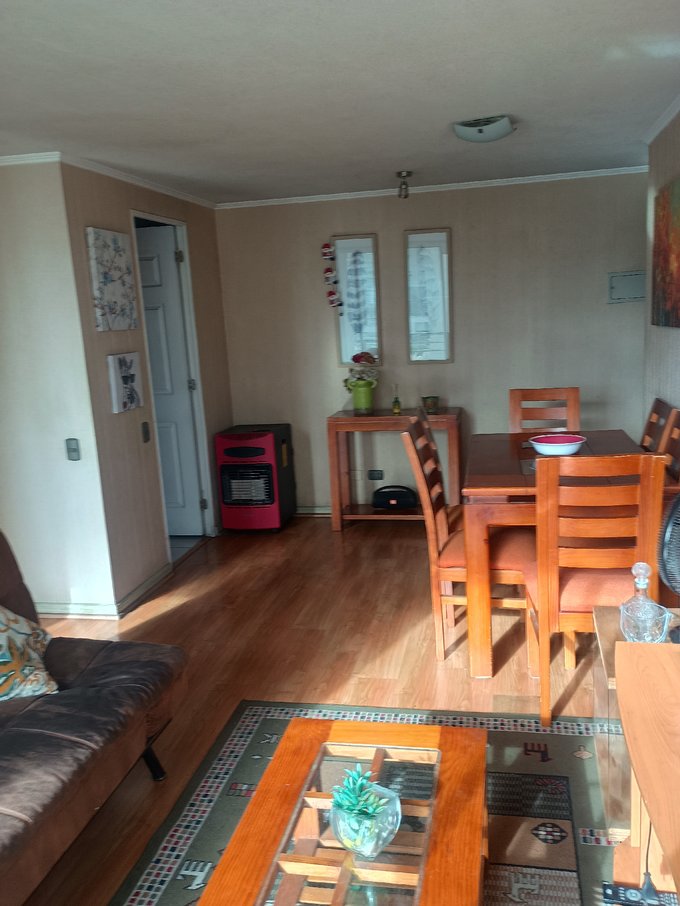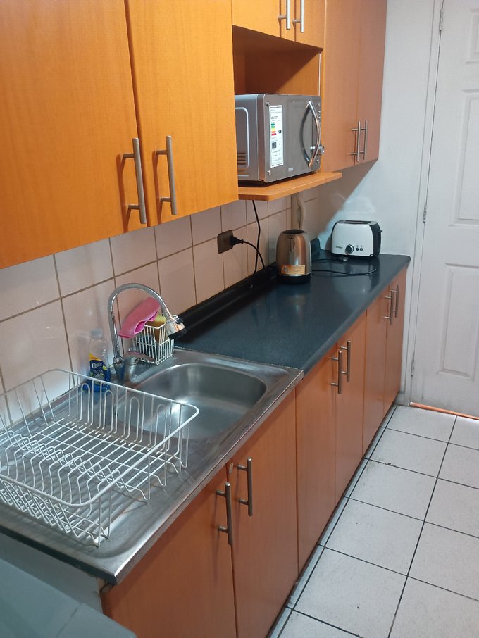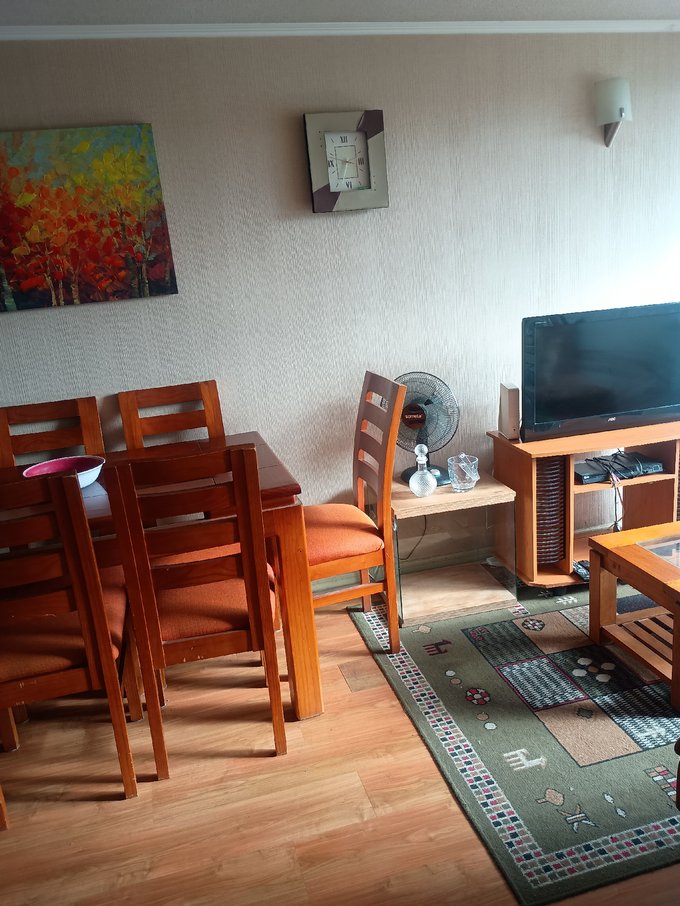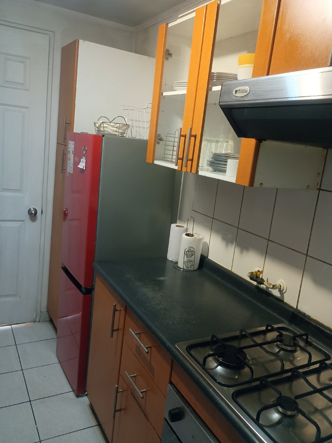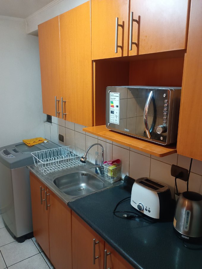 El departamento cuenta con Living-comedor amoblado, estufa, cocina amoblada y equipada con horno, campana, encimera, refrigerador, lavadora, electrodomesticos, loza