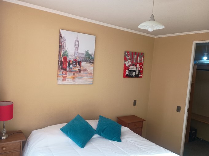 Dormitorio Principal con cama de 2 plazas, veladores, walking closet, segundo dormitorio, con cama de plaza y media, escritorio, closet, baño completo, departamento con cortinas, balcón, Departamento llegar e instalarse