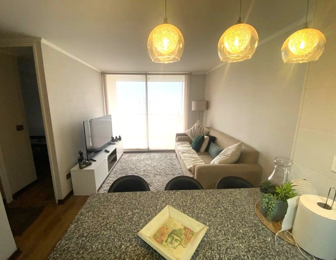 Departamento amoblado y equipado en arriendo en Lo Vial, San Miguel. Ubicado en condominio cerrado con acceso controlado y conserjería 24 horas, el edificio cuenta con menos de dos años de antigüedad y presenta una arquitectura moderna.