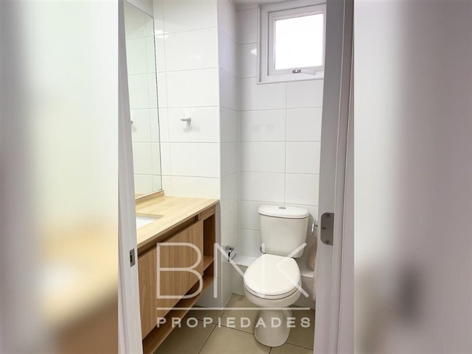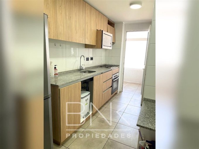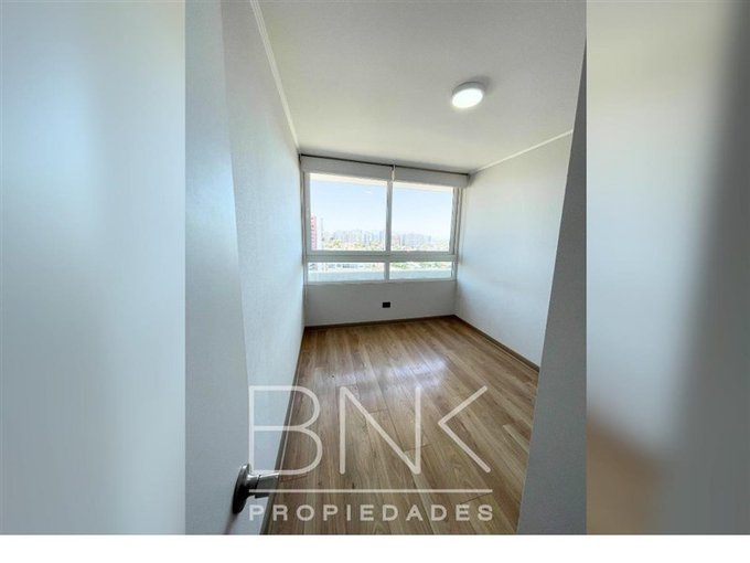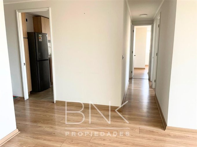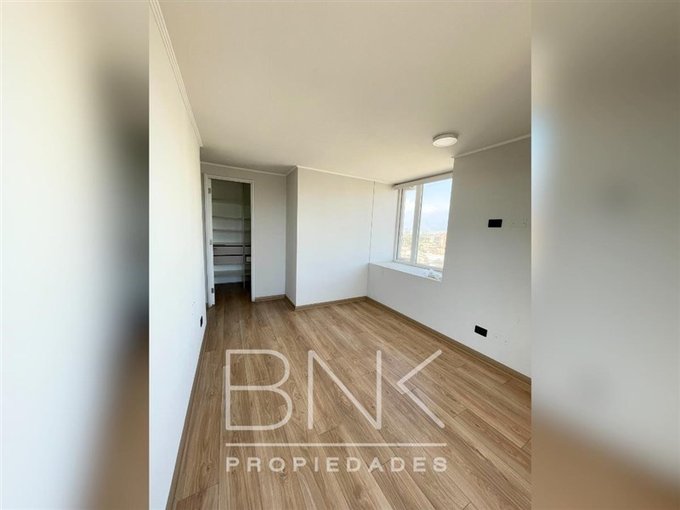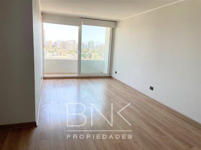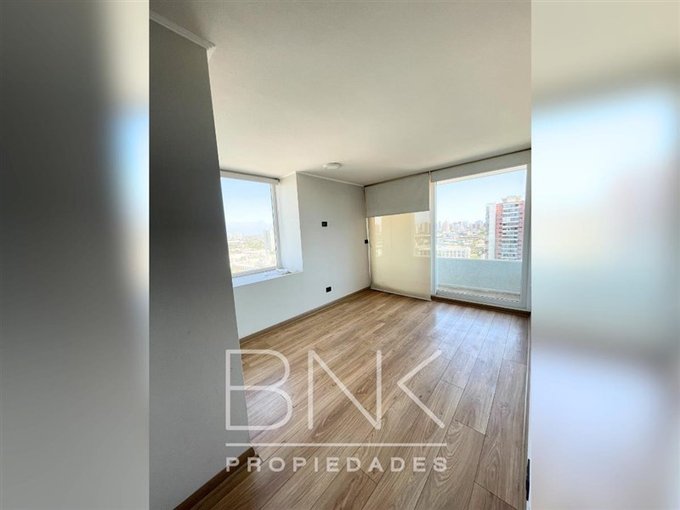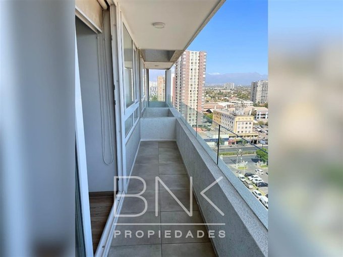 BNK Propiedades arrienda departamento de 86 m2 con salida a terraza en living y dormitorio principal. Ubicado en calle San Nicolás a pasos de Gran Avenida. Cuenta con tres dormitorios, dos baños completos, dormitorio principal en suite. Vista despejada al oriente, piso 15. Cocina cerrada equipada con comedor de diario, cocina eléctrica, horno eléctrico, microondas, campana, refrigerador, cubierta de granito, con logia independiente. Piso flotante, sin calefacción, ventanas termopanel con PVC blanco, terraza con barandas de cristal. Cuenta con bodega y estacionamiento. Gastos comunes aprox. $190.000.