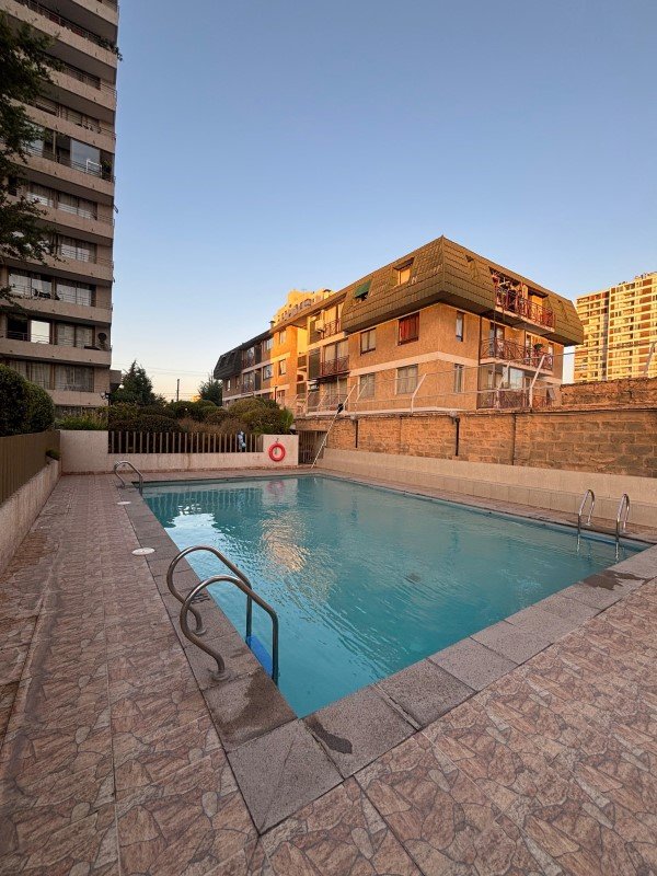 Santa lucia propiedades ARRIENDA Departamento, 2 dormitorios, 1 baño en el pasillo, terraza, logia con conexión a lavadora excelentes áreas comunes, jardines, espacio de juegos de niños, salón de eventos, salón gourmet, quinchos, piscina, gimnasio, lavandería, estacionamiento de visitas general, cercano a estación del Metro Departamental, a todo el comercio en Gran Avenida, supermercados, colegios, universidades, fácil acceso por Gran Avenida o autopista.