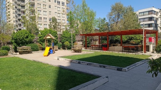 El edificio cuenta con piscina, quinchos, gimnasio sala multiuso, y juegos infantiles