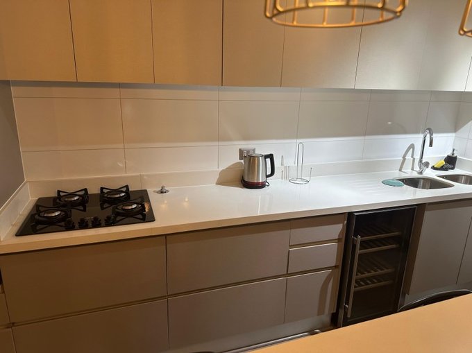 El departamento cuenta con cocina completamente equipada, con encimeras a gas, cava de vino, sistema de calefacción por radiadores y calderas de agua caliente en cada departamento. Además, tienen terrazas con barandas vidriadas, interiores con piso flotante vinílico y fotolaminado.