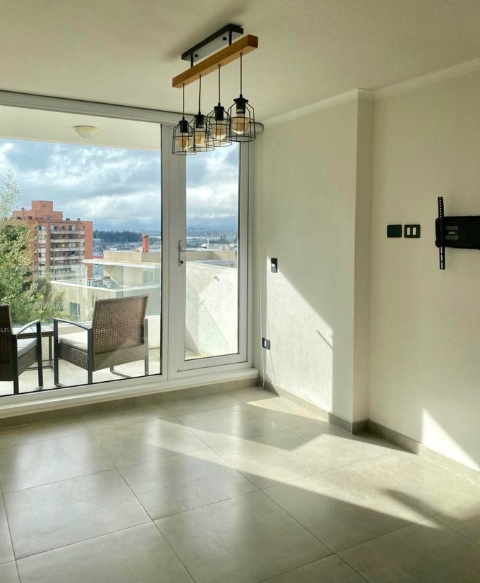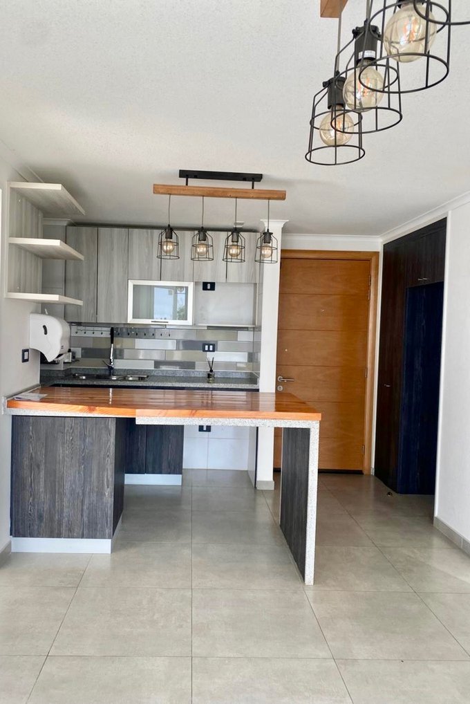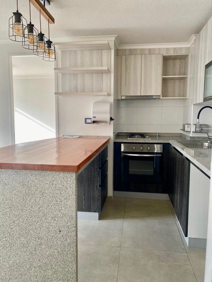 Living comedor Cocina Americana amoblada y equipada con horno, campana y encimera. 2 Dormitorios 2 Baños Balcón Estacionamiento Bodega Edificio cuenta con sala de eventos, Lavandería y piscina. Arriendo Mensual $590.000.- Arrienda Broker propiedades 955218128