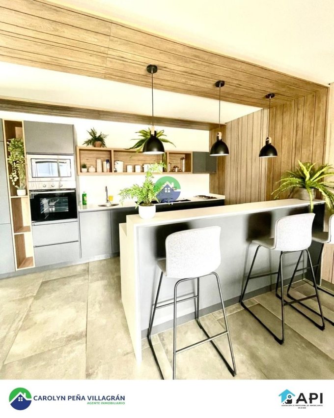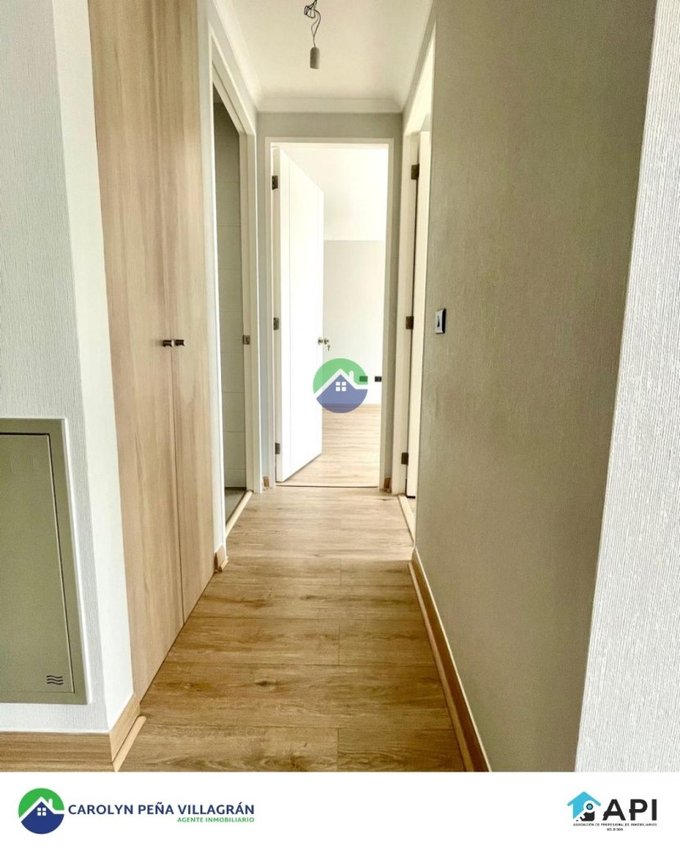 Consta de 2 dormitorios (con closet) y 2 baños (principal en suite), cocina americana amoblada, full equipada con campana, encimera vitrocerámica y horno eléctrico, Living-comedor con acceso a balcón, loggia, ventanas de termopanel PVC, piso fotolaminado en Living-comedor y dormitorios, Piso gris porcelánico en cocina salpicadero en cocina, calefon.