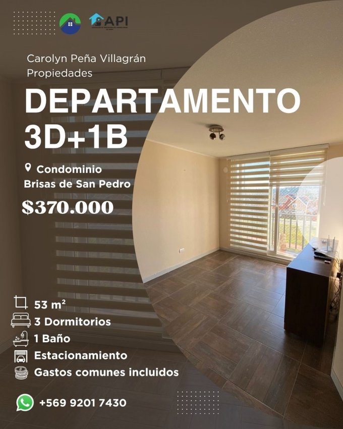 Arrienda: Carolyn Peña Villagrán Propiedades, miembro de la Asociación de Profesionales Inmobiliarios del Bío Bío (API).