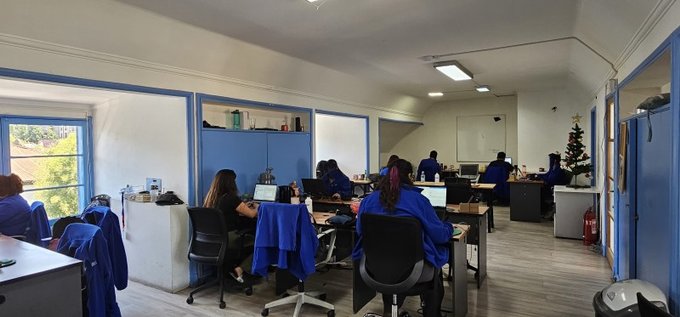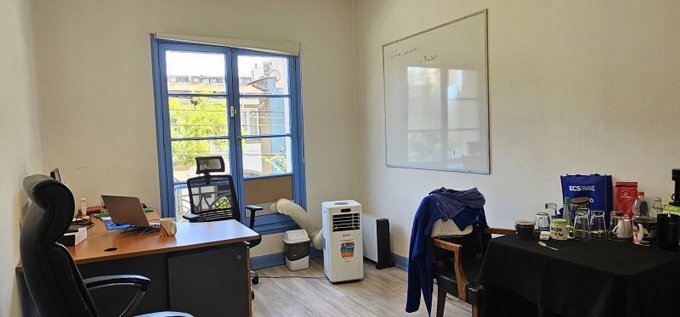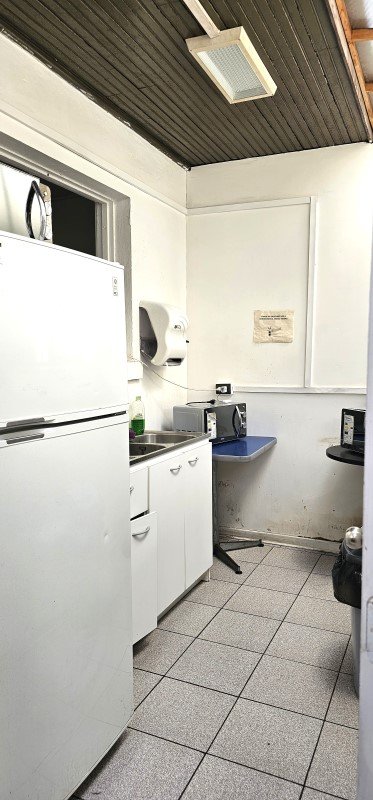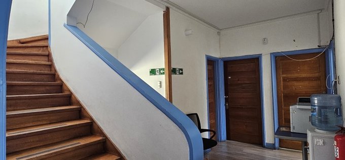 - Antejardín, pasillo de acceso, hall de entrada, sala de reuniones o planta abierta, baños divididos mujer/hombre, cocina.