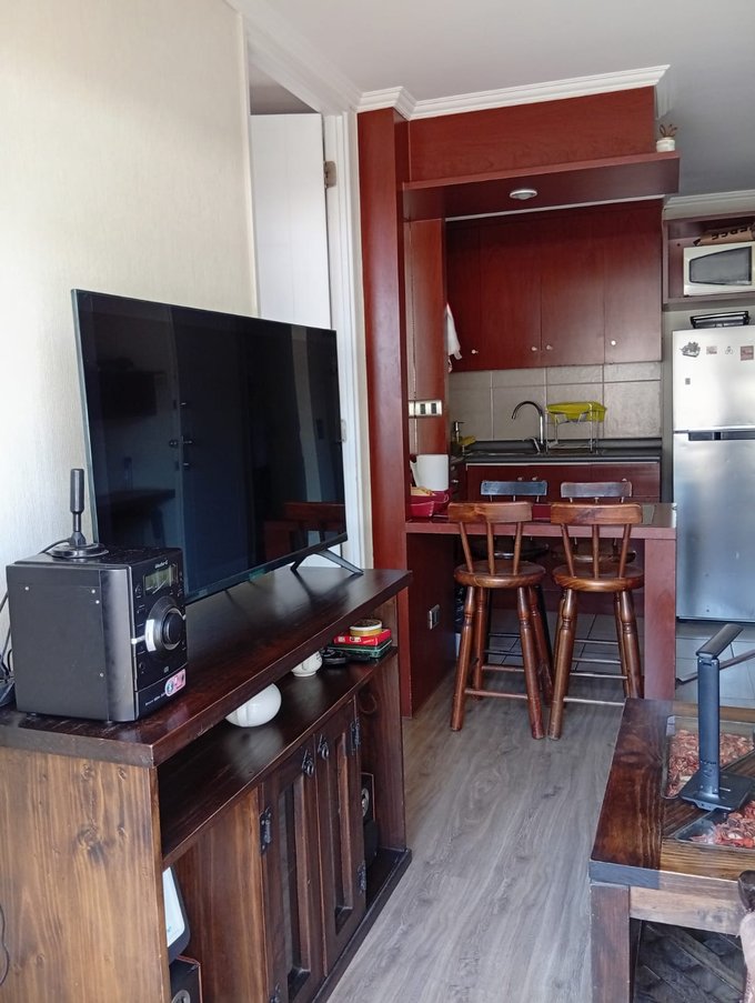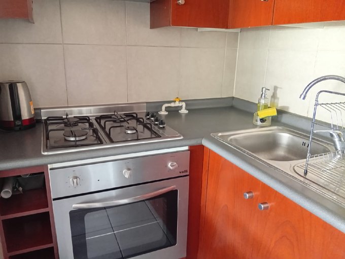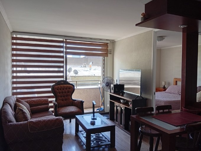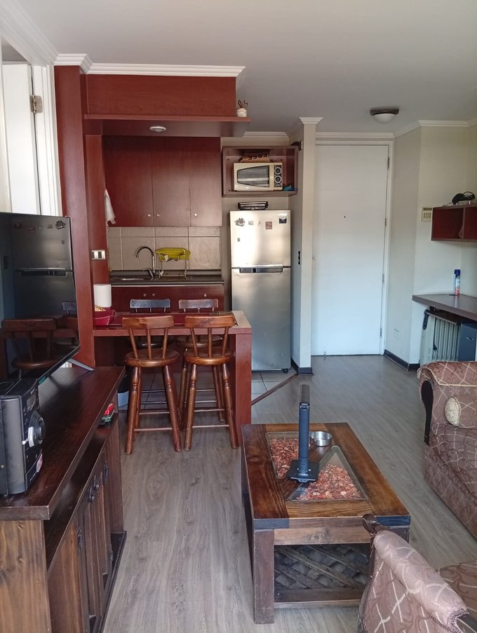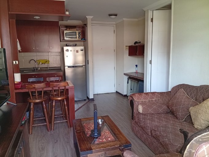 Departamento tipo mariposa totalmente amoblado y equipado. Recibidor con mueble para home office. Cuenta con cocina americana con horno y encimera de 4 platos, con refrigerador y comedor de diario con excelente distribución.