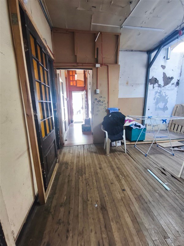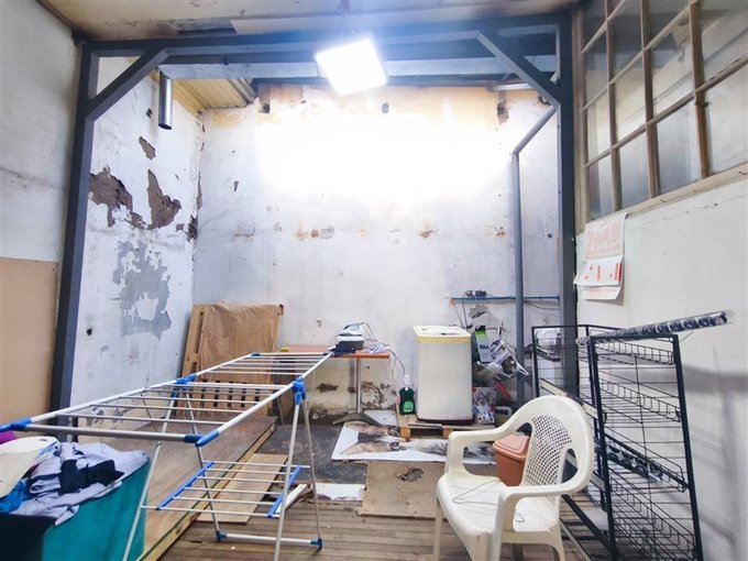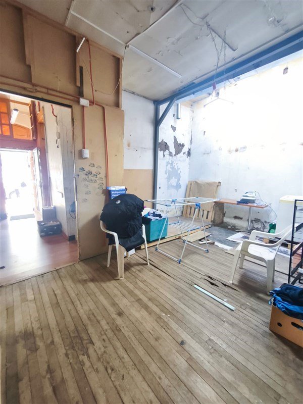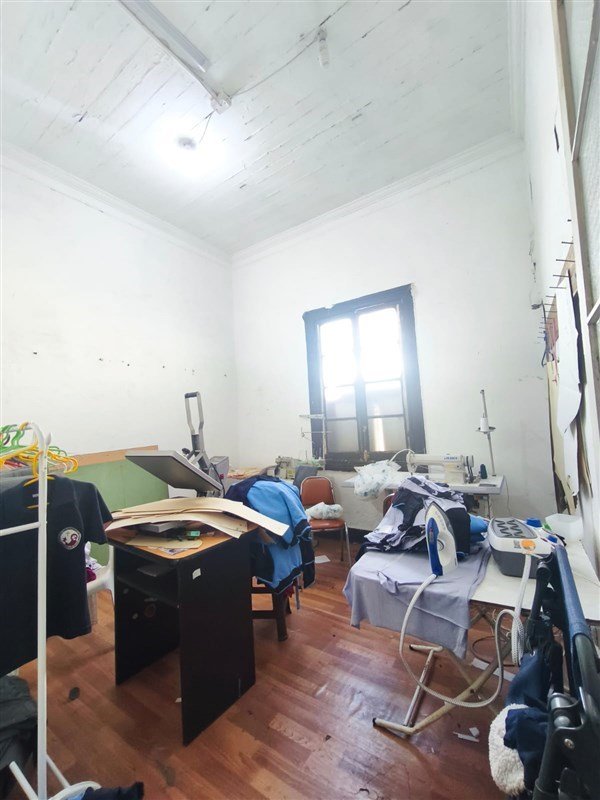 Distribución: Accesos, 4 dormitorios (actualmente adaptados como sala de venta, depósito y sala de producción), living, comedor, 2 baños (uno transformado en loggia), cocina