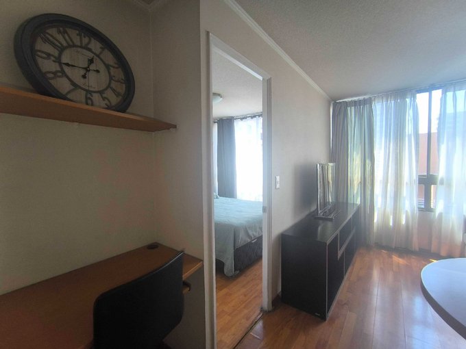 Se arrienda cómodo departamento full amoblado, ubicado en San Martín 870, en pleno centro de Santiago, cercano al Centro Cívico y con excelente conectividad a Metro Línea 2.
