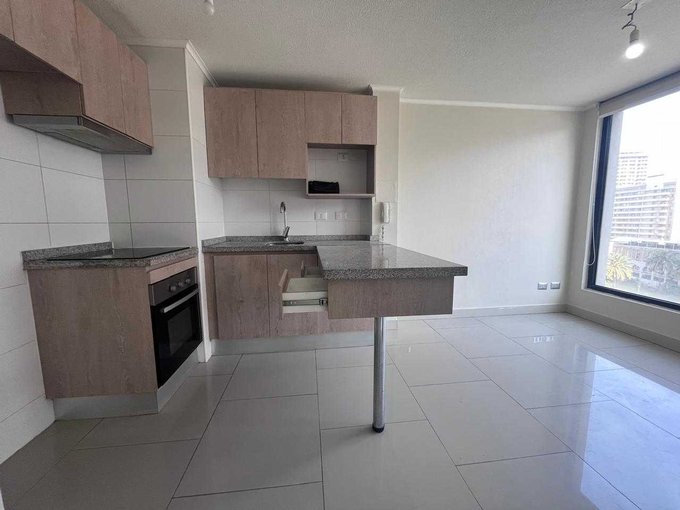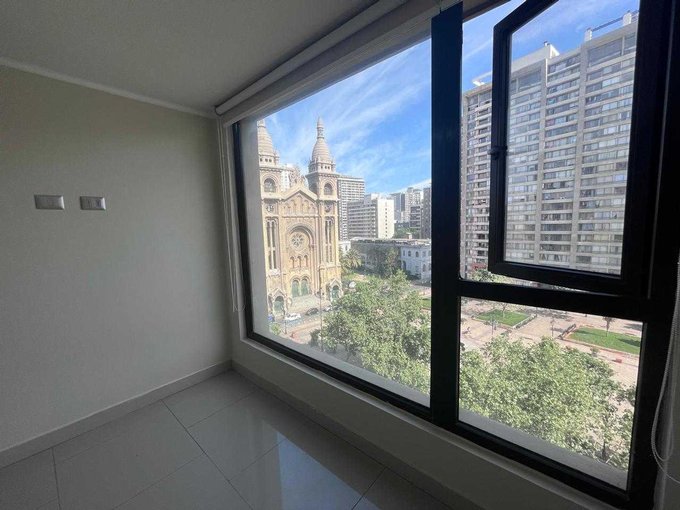 Santa Isabel/Arturo Prat. Con 30M2 este departamento de 1 dormitorio y baño, living, cocina encimera de 3 platos, horno eléctrico y conexión a lavadora, ventanas de pvc y termopanel, a pasos del metro Parque Almagro, con una hermosa vista a la iglesia de Los Sacramentinos y Parque Almagro.