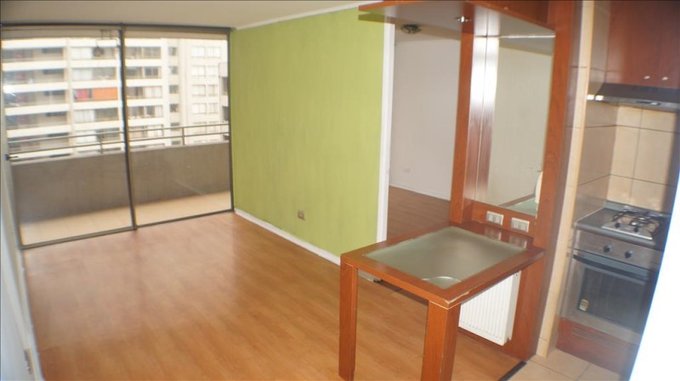 Se arrienda departamento en pleno centro de Santiago a pasos del Metro Santa Ana. El inmueble se ubica en un piso 15, cuenta con cocina americana amoblada y equipada con encimera, campana y horno eléctrico, living comedor, un dormitorio con closet y baño en suite. Cercano a importantes Centros de Estudio de Educación Superior, Centros Médicos, Supermercados, Farmacias, placa financiera, Hospitales, La Vega Central y restaurantes.