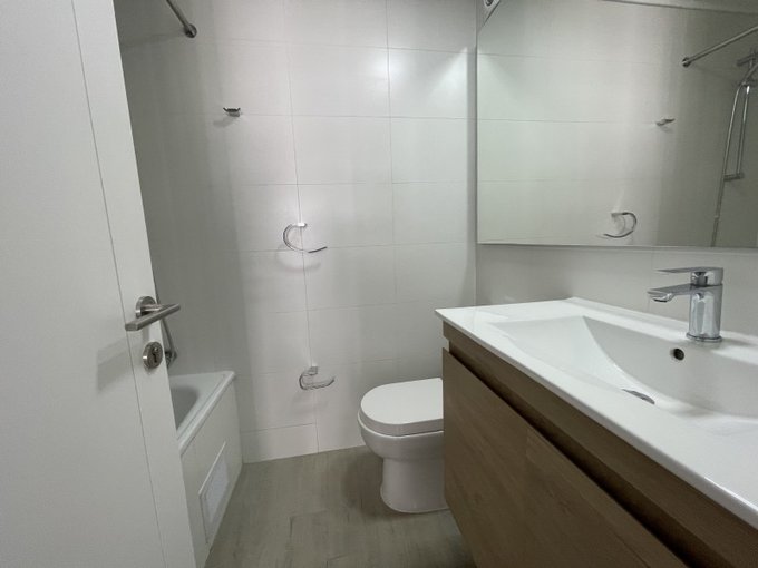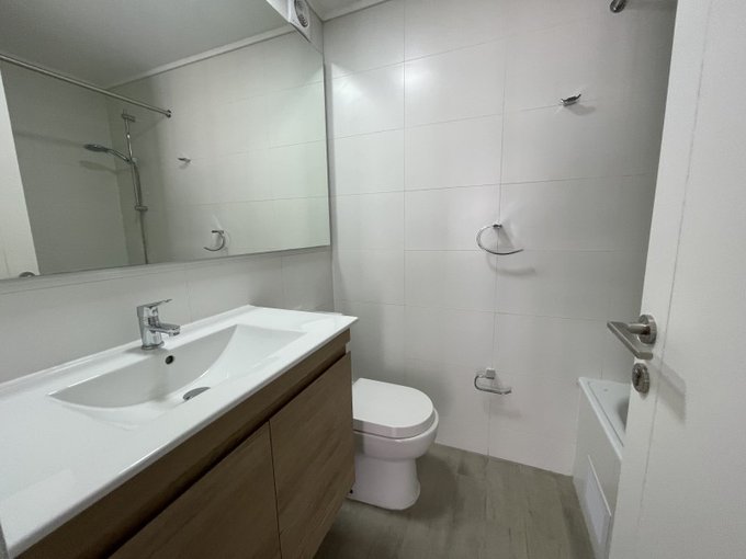 Cuenta con 2 amplios dormitorios, ambos con baño y closet, cocina con cubierta de cuarzo, campana, encimera y horno eléctrico, conexión para lavadora, pisos de porcelanato, amplia terraza, estacionamiento y bodega.