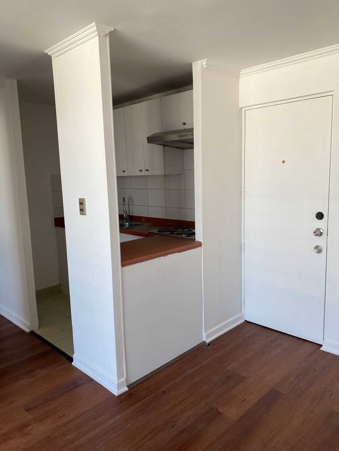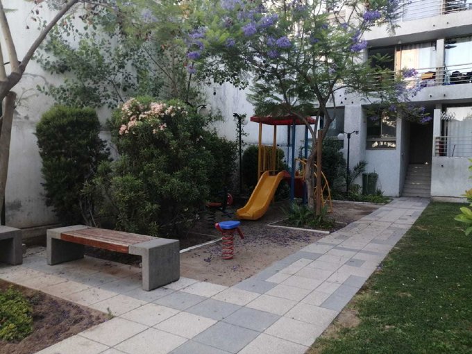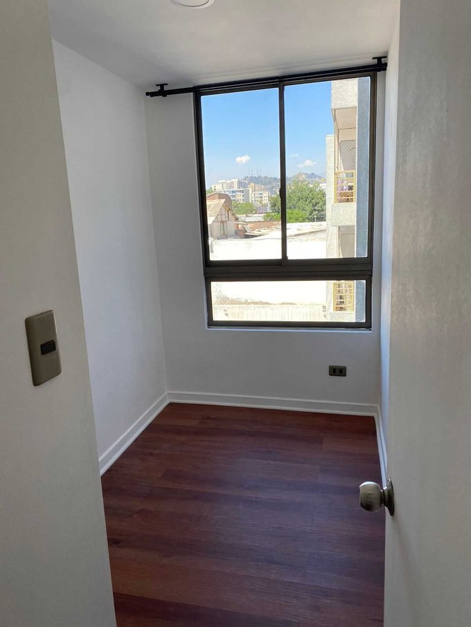 Se arrienda cómodo departamento ubicado en barrio tranquilo de la comuna de Santiago. Depto. de 57 metros cuadrados totales ( incluido balcón). Programa: 3 dormitorios, cada uno con su respectivo closet, lamparas y rieles para cortinas; 2 baños, uno con ducha y otro con tina; cocina americana equipada con horno, campana y encimera, todo eléctrico; living comedor con orientación oriente; piso 3. El edificio es full eléctrico y cuenta con: piscina; quincho; gimnasio; lavanderìa; juegos infantiles; áreas verdes; estacionamiento de visitas; conserjería 24/7; CCTV; rampa para coches y sillas de ruedas; 3 ascensores y sala de eventos con kitchener. Depto. recientemente pintado y con piso nuevo. Incluye bodega.
