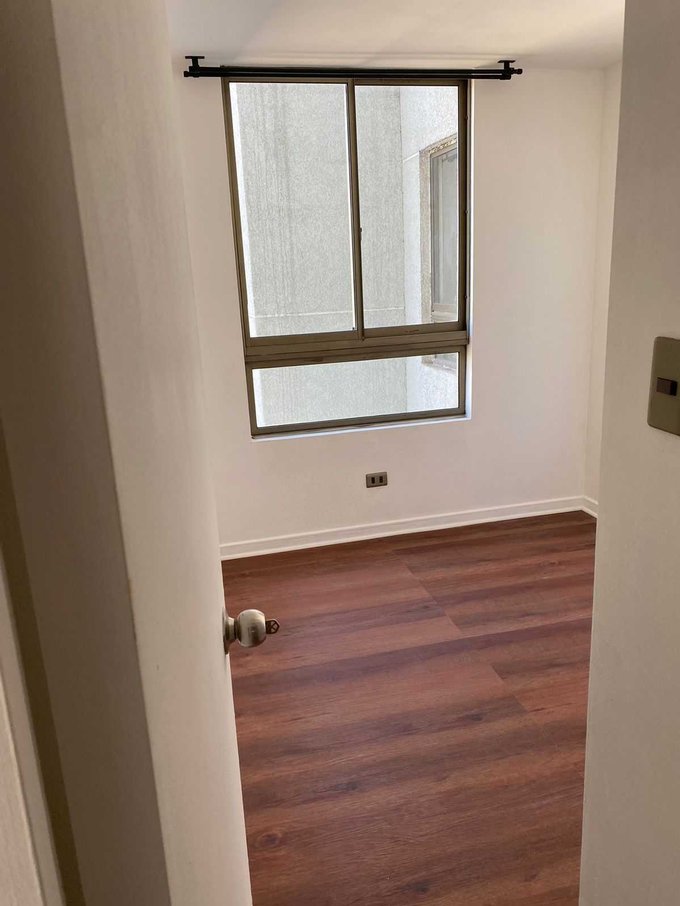 Se arrienda cómodo departamento ubicado en barrio tranquilo de la comuna de Santiago. Depto. de 57 metros cuadrados totales ( incluido balcón). Programa: 3 dormitorios, cada uno con su respectivo closet, lamparas y rieles para cortinas; 2 baños, uno con ducha y otro con tina; cocina americana equipada con horno, campana y encimera, todo eléctrico; living comedor con orientación oriente; piso 3. El edificio es full eléctrico y cuenta con: piscina; quincho; gimnasio; lavanderìa; juegos infantiles; áreas verdes; estacionamiento de visitas; conserjería 24/7; CCTV; rampa para coches y sillas de ruedas; 3 ascensores y sala de eventos con kitchener. Depto. recientemente pintado y con piso nuevo. Incluye bodega.