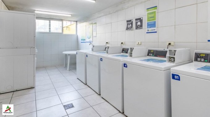 Cocina equipada con campana, horno y encimera a gas. Incluye lavadora automática instalada.