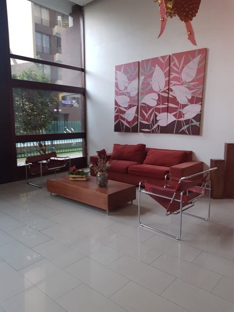Departamento piso 24, a pasos del metro linea 5 estación Santa Isabel (dos estaciones de Baquedano linea 1), parque Bustamante) Condominio cerrado acceso controlado con vigilancia 24/7, terraza, piscina, quincho, lavandería, gimnasio, sala multiuso, áreas verdes, estacionamiento de visitas.
