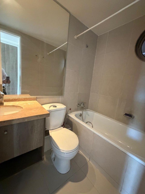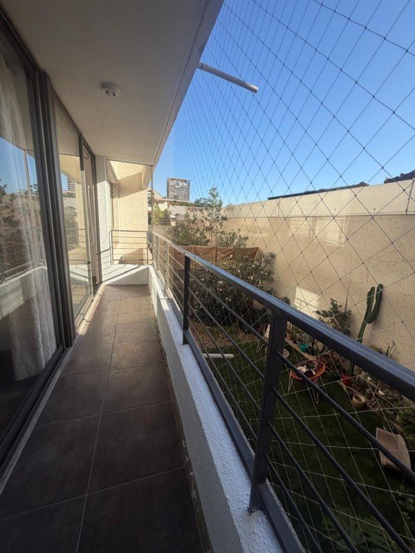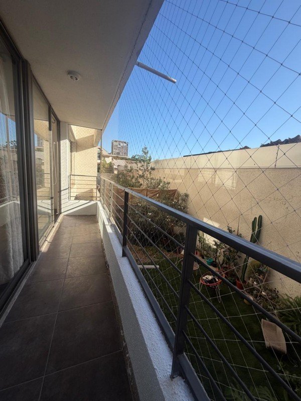 Departamento de 55mts2 totales, estilo mariposa, distribuido con 2 dormitorios amplio ambos con closet y dormitorio principal con walking closet, 2 baños completos, uno de ellos con ventilación natural, cocina americana totalmente amoblada, equipada con cocina encimera, horno empotrado y campana de fibra de vidrio. Amplio espacio para living, con ventanales grandes y una terraza continua que abarca Living comedor, y los 2 dormitorios tiene aproximadamente 4mts2. Piso flotante en todo el departamento y Cerámica en Cocina y baños