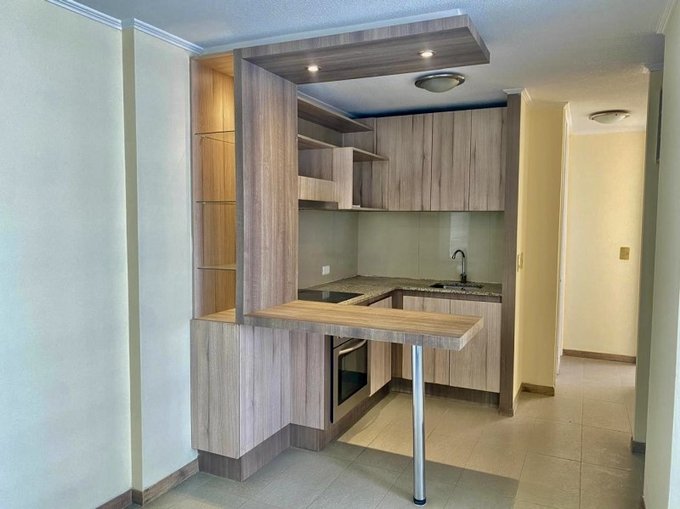 Departamento en arriendo, en sexto piso, cuenta con 2 dormitorios, 1 baño, cocina integrada y terraza. Edificio dispone de piscina, sala de maquinas, sala de eventos, estacionamiento para visitas, lavandería, conserjería 24/7. Los gastos comunes son aproximadamente $80.000.