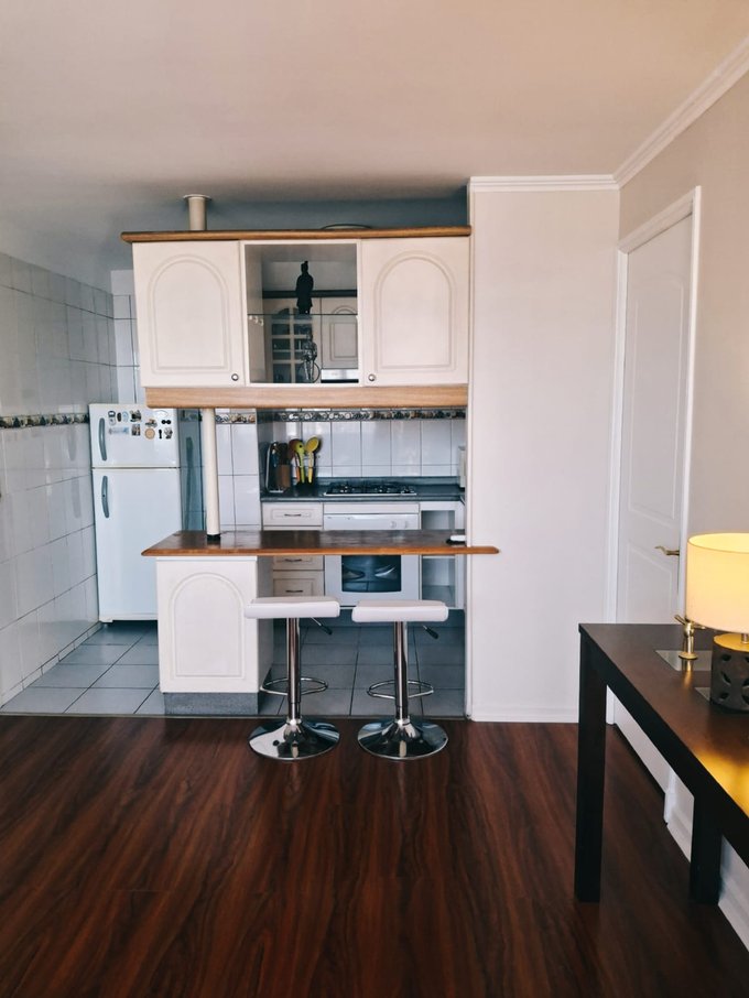 Precio oferta por un mes, luego sube a $350.000 mensual. Hermoso, acogedor y amplio departamento full amoblado, ubicado en piso 7 con vista despejada a la ciudad. 1 dormitorio, walking closet, living, cocina americana equipada, terraza – 42 m2 totales. Sin estacionamiento, sin bodega. Gasto común $80 mil aprox. Edificio con Lavandería, Sala de Eventos, Espacios Comunes, Estacionamiento de Visita. Excelente conectividad, a pasos del metro, comercio, servicios y áreas de interés. Ideal para quienes buscan comodidad, ubicación y calidad de vida.