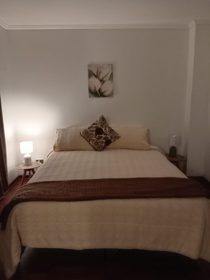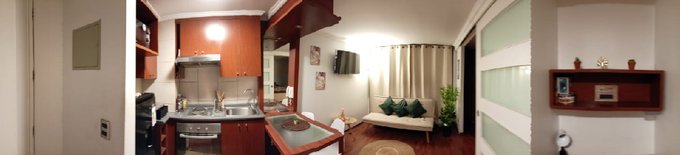Cuenta con pequeño Hall de entrada, Sala Estar amoblada, TV, con vista Norte muy luminoso, 1 Dormitorio en suite amoblado, Closet, 1 Baño completo con instalación para lavadora, Cocina americana amoblada y equipada completamente con encimera, horno empotrado, campana, refrigerador, microonda, hervidor eléctrico, vajilla. Piso flotante en entrada, sala estar y dormitorio, piso cerámico en baño y cocina. Agua caliente a través de calderas.