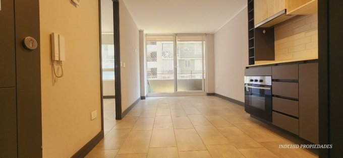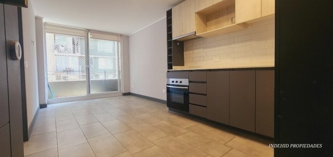 Exclusivo departamento de 1 dormitorio con closet, living y comedor integrado en cocina americana amoblada y equipada full electric ( Horno, Cocina Encimera y Campana ), Termo eléctrico y bodega