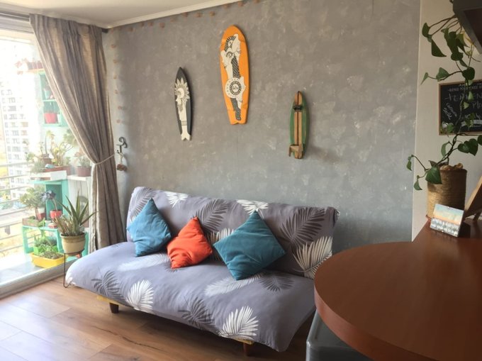 cuenta con living amplio e ilumiando con salida a terraza con una hermosa vista despejada hacia santa isabel.