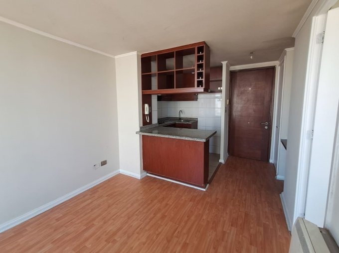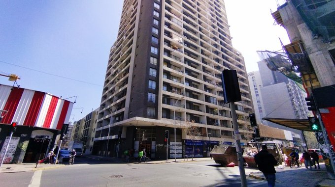 Depto. central a una cuadra de metro Almagro, en piso 23, orientación Sur,, vista despejada.