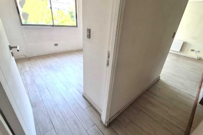 El piso es laminado en todo el departamento, excepto en cocina y baños, que cuentan con cerámica. Las cubiertas de la cocina son de granito, y ambos baños incluyen tina y ducha. La calefacción es por radiadores. No dispone de logia ni conexión a lavadora.