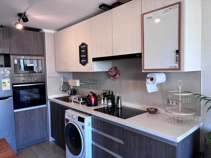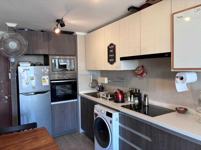 El departamento se arrienda con lavadora y refrigerador.