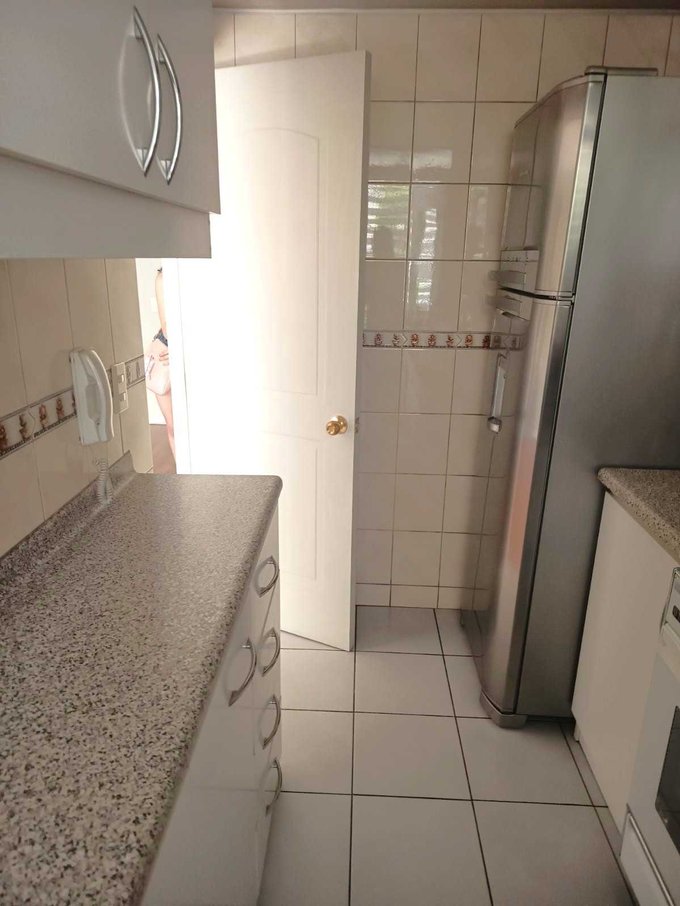 Cocina americana por separado espacio para Ligia y conexión de lavadora.