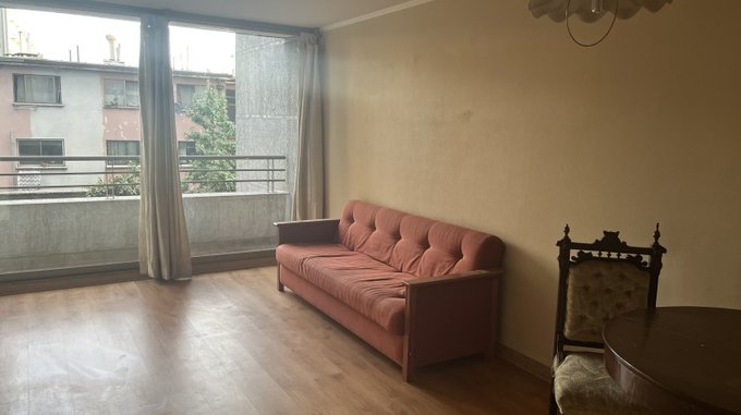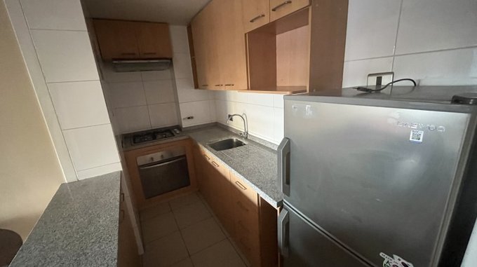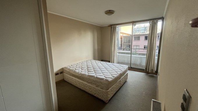 Departamento ubicado en San Diego N516 Departamento 402 esquina Santa Isabel, comuna de Santiago. Se trata de un Condominio de 1 Torre de Departamentos que contempla 24 pisos, este departamento se encuentra en 4 piso, con 3 ascensores. El programa actual de la propiedad contempla una cocina estilo americano-con encimera, horno empotrado, campana, 1 dormitorio con closet y baño en suite, living con salida a un balcón de Conserjería las 24 horas, gastos comunes $45.000.- aprox. mensuales. No cuenta con estacionamiento. No cuenta con instalación para lavadora. LOS TRES PRIMEROS MESES EL ARRIENDO ES DE $280.000.- LUEGO, A CONTAR DEL CUARTO MES $345.000 POR UN AÑO. Condominio cuenta cámaras de vigilancia en todo el edificio, lavandería, piscina, zona de terrazas y quincho en azotea, gimnasio, sala de eventos, estacionamientos de visita. A pasos a metro Parque Almagro, locomoción a la puerta. Excelente conectividad, cercano a supermercados, Universidad Central y comercio variado.