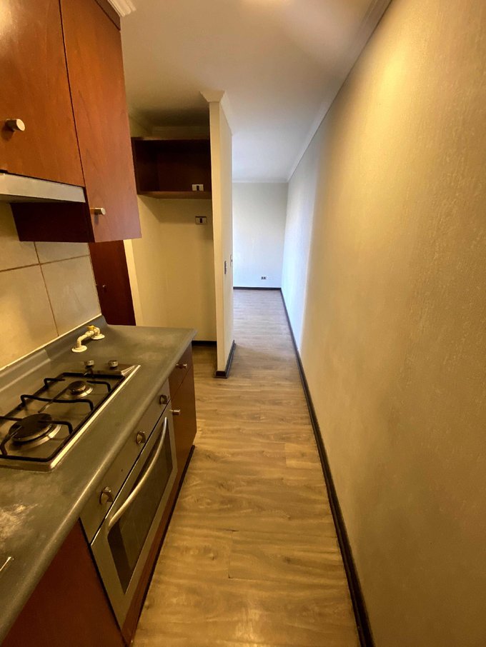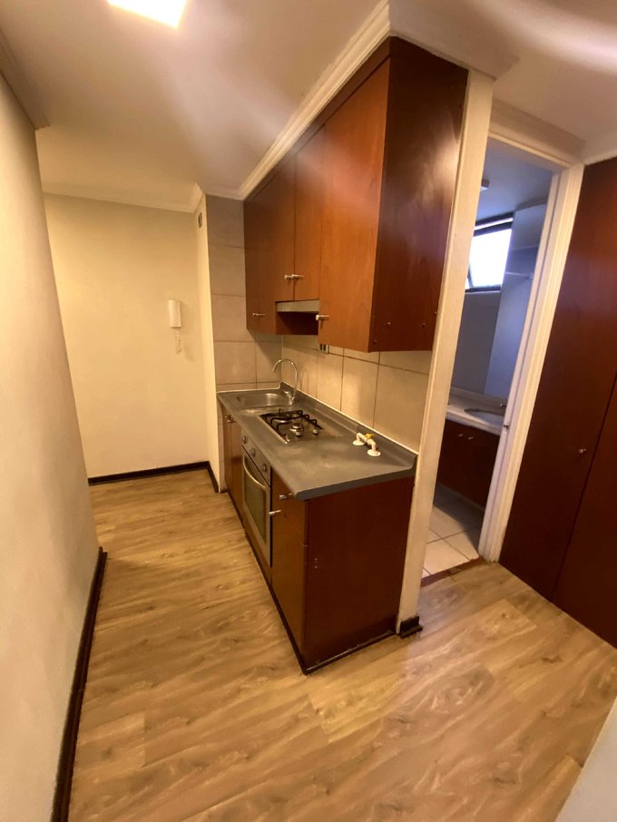 Cuenta con cocina integrada a gas, horno y campana eléctricos, conexión a lavadora, agua caliente por caldera.